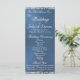 Ce design romantique présente un élégant arrière - plan bleu avec bordures de parties scintillant, détails de la cérémonie de mariage & merci sur le devant avec les membres de la fête de mariage sur le dos. Aussi disponible avec différents arrière - plans de couleur pour vos couleurs mariages. (La Parties scintillant est simulée dans l'illustration). Conçu pour coordonner avec la collection Mariage "Two Shall Become One - Hearts, Doves & Parties scintillant". Pour modifier les détails, cliquez sur "Personnaliser". Pour déplacer le texte ou modifier la taille, la police ou la couleur du texte, cliquez sur "Cliquez pour customiser plus loin"
