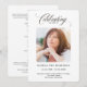 Un élégant programme photo personnalisé de commande de service funéraire mémorial programme. Design dispose d'un modèle photo simple avec une typographie noire moderne classique sur un arrière - plan blanc propre. Facile à customiser texte et photo. Nos sincères condoléances à vous et à votre famille pour votre perte.