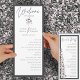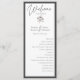 Cet élégant programme de cérémonie florale minimaliste est parfait pour un mariage d'automne ou d'hiver. L'élégante carte à programme encadrée de noir présente des fleurs d'aquarelle délicates dans des tons violets et gris poussiéreux. Inclure le nom de la mariée et du marié, la date et l'ordre de service du mariage, la fête de la mariée et un mémorial optionnel "en mémoire d'amour". Texte stylisé Caligraphie utilisé pour le titel Welcome and Bridal party pour lui donner des détails manuscrits modernes à un programme de mariage élégant et classique.