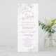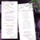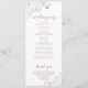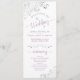 Ce magnifique programme de mariage présente un design élégant avec du texte pourpre ou lavande poussiéreux sur un arrière - plan blanc et des boucles et des tourbillons en faux feuille gris argent en dentelle dans les coins. Les titres sont écrits en calligraphie de script sophistiquée, et il y a de l'espace pour vos détails de cérémonie et de mariage, ainsi qu'un bref merci pour vos invités. Merveilleuse façon d'accueillir vos amis et votre famille à votre fête mariage.