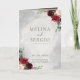 Complimentez votre magnifique événement mariage avec ce programme de mariage plié de fleurs de pivoine rose de fantaisie. Le design présente de belles fleurs rose, rousses, bleues, navales et bordeaux peintes à la main et agrémentées de feuilles verts, soigneusement groupées en bouquets élégants pour embellir vos cartes d'invitation à l'événement.