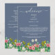Une belle aquarelle fleur sauvage et mariage Periwinkle design. Un design unique qui utilise des fleurs botaniques vintages rustiques. Un élégant design floral bleu rétro et poussiéreux avec une touche de verdure. Un programme d'itinéraire fleur sauvage et mariage de Periwinkle couvre la conception avec des éléments modernes. Des invitations de mariage et d'autres articles de papeterie sont également disponibles.