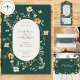 Ce programme de mariage comprend un élégant arrière - plan vert émeraude, qui dégage un sentiment de sophistication et de richesse. La teinte verte profonde crée un décor captivant qui donne le ton d'une célébration mémorable. Autour du texte, des fleurs sauvages d'aquarelle délicats et rustiques ainsi qu'une zone de texte crème sont artistiquement disposés. Ces fleurs charmantes, aux teintes douces, évoquent un sentiment de beauté naturelle et de tranquillité. La technique de l'aquarelle leur donne une apparence douce et éthérée, renforçant l'ambiance romantique globale de l'invitation. La combinaison de l'arrière - plan vert émeraude et des fleurs sauvages rustiques d'aquarelle crée un design mariage visuellement époustouflant qui respire l'élégance et une touche de fantaisie. Il ouvre la voie à une célébration romantique remplie de beauté naturelle et de moments de coeur. Créé par Simply Farmhouse Press.