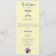 Une jolie bourgeoise se dresse délicatement au milieu de deux délicates fleurs de lavande et de feuilles verts frais, le tout dans un décor jaune crème et doux. Parfait pour un mariage qui célèbre l'amour et la beauté de l'extérieur.