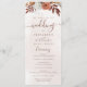 Cartes de programme de mariage de style bohème moderne avec des fleurs d'aquarelle et des feuilles de chute dans les tons de terre comme rouille brun, orange brûlé et terre cuite. Un choix parfait pour les mariages d'automne.