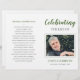 Cet élégant programme de cérémonie de commémoration de photos vert et noir est une belle façon de se souvenir d'un être cher pendant la célébration de la vie. Une fois que vous les recevez, pliez-les en deux et offrez-les à des invités de cérémonie.