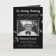 Dans Loving Memory programme avec sur la couverture une photo de votre être aimé, leur nom, les dates, le lieu de mémoire, la date de l'événement et les graines de voeu flottantes comme décoration. A l'intérieur se trouve une nécrologie et un ordre de service ; au fond, une note de remerciement et le lieu de la veillée. Tout le texte peut être customisé.