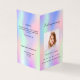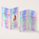 Un programme élégant de 4 pages. Un arc-en-ciel girly, arrière - plan holographique en rose, violet, bleu et vert menthe. Personnalisez et ajoutez une photo, un nom, des dates et votre texte.