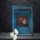 Un programme élégant de 4 pages. Un ciel bleu foncé comme arrière - plan, un cadre faux argenté, et l'espace pour votre photo à l'avant. Personnalisez et ajoutez le nom, les dates et votre texte. Texte blanc.