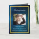 Un programme élégant de 4 pages. Un ciel bleu foncé comme arrière - plan, un cadre faux or, et l'espace pour votre photo sur le devant. Personnalisez et ajoutez le nom, les dates et votre texte. Texte blanc.