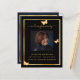 Un programme élégant de 2 pages. Un arrière - plan noir, un cadre en faux or, des papillons dorés et un espace pour une photo. Personnalisez et ajoutez le nom, les dates et votre texte.