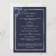 Un programme élégant de 2 pages. Un arrière - plan bleu foncé, un cadre faux argenté, des fleurs bleues et un espace pour une photo. Personnalisez et ajoutez le nom, les dates et votre texte.