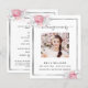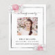 Un programme élégant de 2 pages. Un arrière - plan blanc, un cadre faux argenté, des fleurs roses et blanches et un espace pour une photo. Personnalisez et ajoutez le nom, les dates et votre texte.