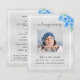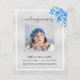 Un programme élégant de 2 pages. Un arrière - plan en faux argent, un cadre blanc, des flores bleues oubliées et pas de l'espace pour une photo. Personnalisez et ajoutez le nom, les dates et votre texte.