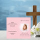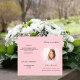 Un programme élégant de 4 pages. Un arrière - plan rose ceinturon. Personnalisez et ajoutez une photo, un nom, des dates et votre texte. Des rayons de lumière blanche derrière la photo.