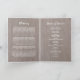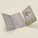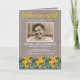Un programme de célébration de la vie avec un arrière - plan rustique en bois, sur le devant, couvre une photo du défunt, son nom, ses dattes et ses tournesols jaunes vifs. À l'intérieur, on trouve une nécrologie et un ordre de service; et sur le dos une note de remerciement et les détails suivants.
