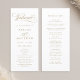 Ce programme de cérémonie de mariage en or et blanc avec des calligraphies tourbillonnant élégantes et romantiques avec vos noms, la date du mariage, l'ordre de service et les détails de la fête de mariage. Pour une personnalisation plus avancée de cette conception, cliquez sur le BOUTON OUTIL DESIGN BLEU ci-dessus !