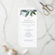 Ce programme de mariage tendance et élégant présente une forme géométrique en faux or rose entourée de belles branches de verdure.