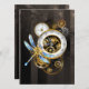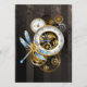 Cadran d'antiquités avec or et lances en laiton, décoré de libellules mécaniques sur arrière - plan brun rayé. Steampunk.