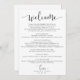 Bienvenue à votre invité avec cette belle lettre - idéal pour les sacs cadeaux d'hôtel pour les clients extérieurs à la ville! Modifiez facilement l'agenda quotidien, les noms et la date ! Ce design est doté d'une belle police noire classique, parfaite pour tout mariage !