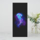 Grande méduse bleue, artistiquement dessinée, brillante, brillante, avec de longues tentacules sur arrière - plan noir avec bioluminescence violette. Méduse brillante.