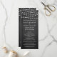 Simple mais élégant, les lampes à cordes de la collection de mariage de tableau noir est un design étonnant avec de belles lumières à cordes blanches suspendues sur un arrière - plan à effet de tableau noir, qui est parfait pour toute célébration mariage moderne. Ces programmes peuvent être personnalisés pour votre occasion spéciale et rendraient la commande parfaite de service pour votre mariage, douche nuptiale, fête de fiançailles, fête d'anniversaire et bien d'autres occasions spéciales. Ajoutez votre libellé personnalisé à cette conception à l'aide des cases "Modifier ce modèle de conception" situées à droite de l'élément, ou cliquez sur le bouton bleu "Customiser" pour arranger le texte, modifier les polices et les couleurs et ajouter des informations ou des images supplémentaires à cette conception.
