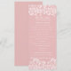 Belle commande de service de couleur rose et blanc avec des volutes et des fioritures florales blanches. Des fioritures florales détaillées et des volutes encadrent le texte. Tout le texte peut être modifié pour répondre à vos besoins. La couleur et le placement peuvent également être modifiés. Si vous souhaitez une combinaison de couleurs personnalisée pour votre mariage, veuillez cliquer sur 'Contact' ci-dessus. N'oubliez pas de consulter tous les articles assortis pour coordonner parfaitement votre mariage ou événement !