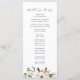 Élégant programme de mariage floral avec vos noms encerclés par une couronne de magnolias d'aquarelle blanche, roses roses rousses, fleurs de coton et feuilles verts. Personnalisez les programmes de mariage floral en ajoutant votre date et emplacement mariage, l'ordre des événements et la fête de mariage au dos. Conçu pour coordonner avec notre collection de mariage Watercolor Magnolias.