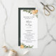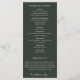 Élégant mariage rustique dans un verger d'agrumes botaniques, programme de mariage. Texte modèle liste pour l'ordre des événements de la cérémonie, cortège de mariage et note de remerciement. La couleur de fond montrée en vert chasseur foncé coordonnant, peut être personnalisée.