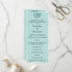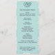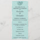 Un programme de mariage très élégant, personnalisé en aqua douce / turquoise, partie de l'ensemble de papeterie mariage "Turquoise Damask" assorti d'un motif damassé turquoise et blanc clair avec ornement turquoise.