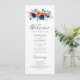 Burnt Orange Navy Floral Rustic Watercolor Wedding Programme. Programme de mariage floral marine orangé avec de belles fleurs d'aquarelle peintes à la main et bouquet verdoyant avec script de calligraphie moderne. Éléments correspondants disponibles.