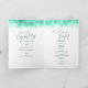 Art moderne abstrait double face vert émeraude sur un programme de mariage arrière - plan blanc. Modifiez ce programme de mariage avec vos propres noms, dates, libellé de cérémonie, accompagnateurs de mariage et merci. Un programme simple mais élégant remplace simplement l'exemple de texte par les détails de la cérémonie de mariage, la fête de mariage et le message de remerciement. Peinture et design abstrait d'origine par Sarah Trett. www.sarahtrett.com pour www.mylittleedenweddings.com