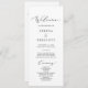 Ce délicat programme d'ampersan et de mariage en calligraphie noire est parfait pour un mariage moderne. Le design minimaliste romantique présente une belle et élégante typographie noire sur un arrière - plan blanc au look épuré et sobre. Inclure le nom de la mariée et du marié, la date et le lieu du mariage, le message de remerciement, l'ordre de service, la fête de mariage et un mémorial optionnel "en mémoire d'amour".