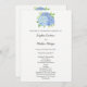 Ces programmes de mariage comprennent des fleurs d'hydrangée bleu aquarelle et des feuilles. Le devant de la carte a la cérémonie et le dos de la carte liste la fête de la mariée. Ces programmes de mariage font partie d'une collection qui comprend une gamme complète de papeterie mariage correspondante que vous pouvez personnaliser pour votre mariage. Visitez les pages de collection de notre magasin pour voir la gamme complète.