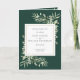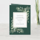 Doté de délicats feuilles d'aquarelle sur un arrière - plan vert émeraude, ce programme de mariage botanique plié chic peut être personnalisé avec vos informations spéciales de mariage. Conçu par Thisisnotme©