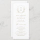Initiales monogrammes encadrées par d'élégantes crêtes et des feuilles botaniques illustrés à la main, vos détails de l'événement en écriture élégante et police classique, simple et luxueux. Grands programmes en faux or et blanc pour mariage classique moderne, mariage formel simple, élégant mariage de jardin botanique. Voir toutes les pièces correspondantes dans la collection.