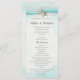 Romance de plage avec ruban et dentelle d'étoile de mer, programme de mariage turquoise.