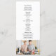 Simple, minimaliste, noir et blanc, programme de mariage script moderne, avec photo du couple à l'arrière.