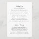 Élégant programme de mariage avec un design simple avec les détails de votre événement dans les polices serif et script à l'intérieur d'une bordure.