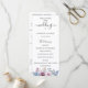 Fleurs et feuillage élégants aquarelle bleu poussiéreux et mauve, programme de mariage. Le programme présente une calligraphie mignonne accentuée de "mariage" avec plusieurs lignes pour des listes de texte personnalisées pour l'ordre des événements de la cérémonie, le cortège de mariage et le mot de remerciement.
