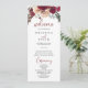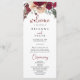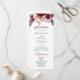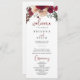Ce programme de mariage floral rose bordeaux est parfait pour un mariage rustique. Le design présente des fleurs rousses bordeaux et roses avec des feuilles verts, inspirant beauté artistique.