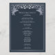 Découvrez la magie de votre grand jour ! Ces programmes de mariage d'imaginaires médiévaux comportent un lion royal entouré de fleurs argentées complexes et un monogramme contre un arrière - plan bleu marine, mêlant élégance et grandeur. Un parfait souvenir pour célébrer votre conte de fées ! L'argent figurant sur cet article n'est PAS du papier à papier réel et est imprimé en couleurs plates.
