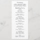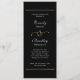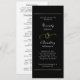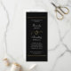 Ce texte minimal imprimé sur fond noir est un programme élégant pour votre jour de mariage. Le dos est blanc avec une écriture noire. Personnalisez toutes les informations, y compris les détails de la cérémonie et les participants