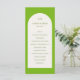 Programme de mariage moderne avec votre monogramme ainsi que votre ordre de cérémonie et de mariage à l'intérieur d'une arche couleur ivoire sur un arrière - plan chartreuse/vert citron. Ce design simple mais élégant aux couleurs vives et audacieuses conviendra parfaitement aux mariages d'été.