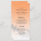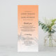 Élégant programme de mariage de destination avec un design de palmier tropical sur un arrière - plan orange coucher de soleil avec un script élégant et une typographie moderne. La papaye orange se fond sur un arrière - plan blanc. Ajoutez simplement les détails de votre mariage à cet élégant programme de mariage tropical de plage. Conçu exclusivement pour vous par Happy Dolphin studio.