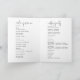 Ce programme de mariage moderne chic noir et blanc plié est parfait pour un mariage simple. Le design boho minimaliste présente une typographie bohème rustique unique et élégante dans un noir et blanc épuré minimal.