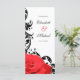 Beau programme de mariage personnalisé rose rouge. Doté d'une rose rouge classique et d'élégants tourbillons noirs fleuris. Flore par © Mujka Design