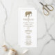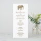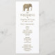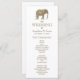 Programme de mariage blanc simple, élégant et minimal avec script de calligraphie moderne et monogramme de silhouette d'éléphant en feuille d'or - avec initiales en haut.