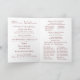 Le design présente votre texte au format de masse nuptiale catholique traditionnel, affiché dans une police de couleur bordeaux contre un arrière - plan blanc. Les roses de Bourgogne grace le coin. L'image bordeaux d'une croix et d'anneaux mariages est affichée sur les noms en-dessous. Le design intérieur suit le format traditionnel pour une Messe Nuptiale Catholique. Chambre pouvant accueillir jusqu'à six demoiselles d'honneur et Groomsmen. Le dos comprend un message de gratitude personnalisable et un mémorial facultatif pour ceux qui sont chers et qui sont passés. Comprend également de la place pour votre photo. Tout le texte est personnalisable. Conçu pour coordonner avec la collection de la suite Mariage Rose-Corse catholique de Bourgogne.