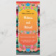 Programme de mariage assorti avec parties scintillant faux or, fleurs de picado papel et un arrière - plan de tapis.